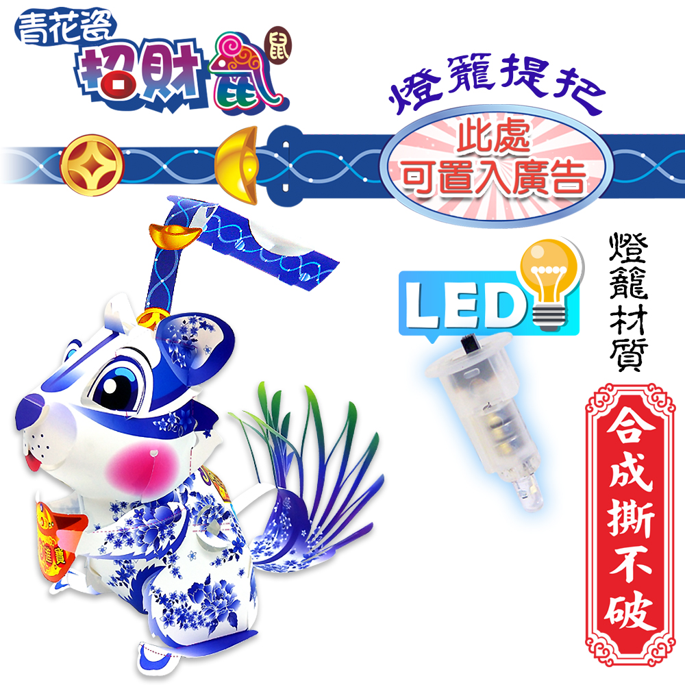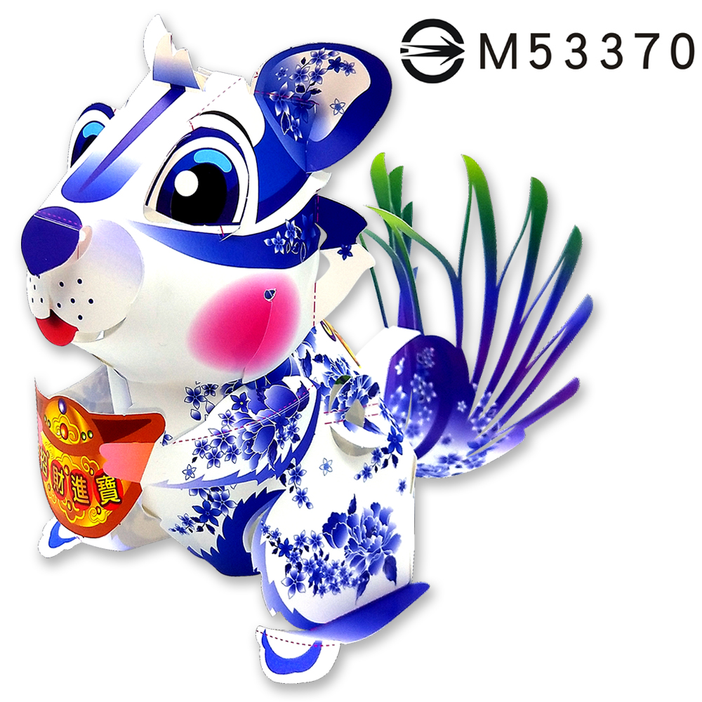 青花瓷招財鼠-DIY摺紙燈籠