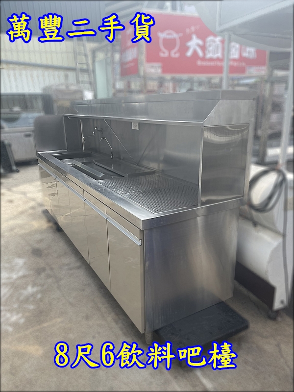 萬豐二手貨 二手 8尺6飲料吧檯 不鏽鋼操作吧檯 飲料吧台 工作吧檯 營業用吧檯 不鏽鋼吧檯 不鏽鋼
